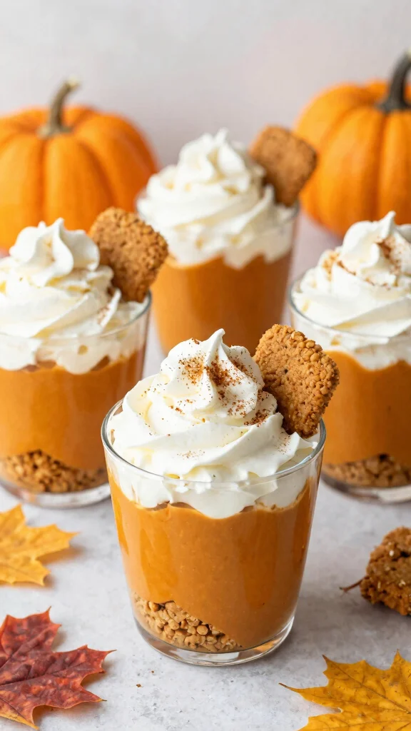 Mix pumpkin puree with Cool Whip and a hint of pumpkin spice, then layer this mixture with crushed graham crackers for texture. Not only do these cups taste fantastic, but their layered appearance is sure to impress your guests!