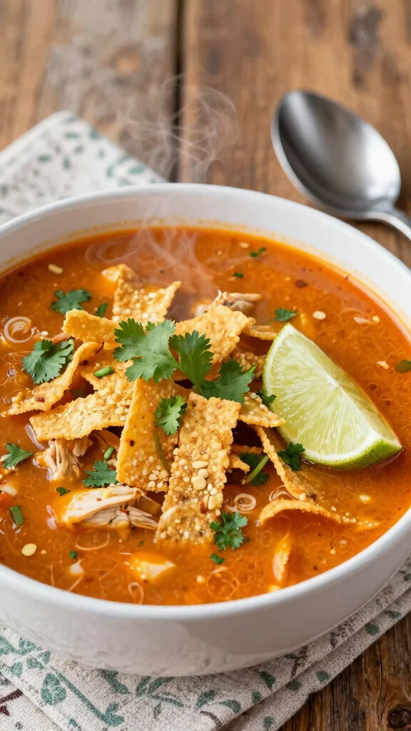 Looking for a spicy twist on a classic? This spicy chipotle chicken tortilla soup will kick your taste buds into high gear! Smoky chipotle peppers infuse each spoonful with bold flavors, perfect for heat lovers.Not only does it satisfy your craving for spice, but it also pairs beautifully with creamy avocado and cheese for a balanced meal.