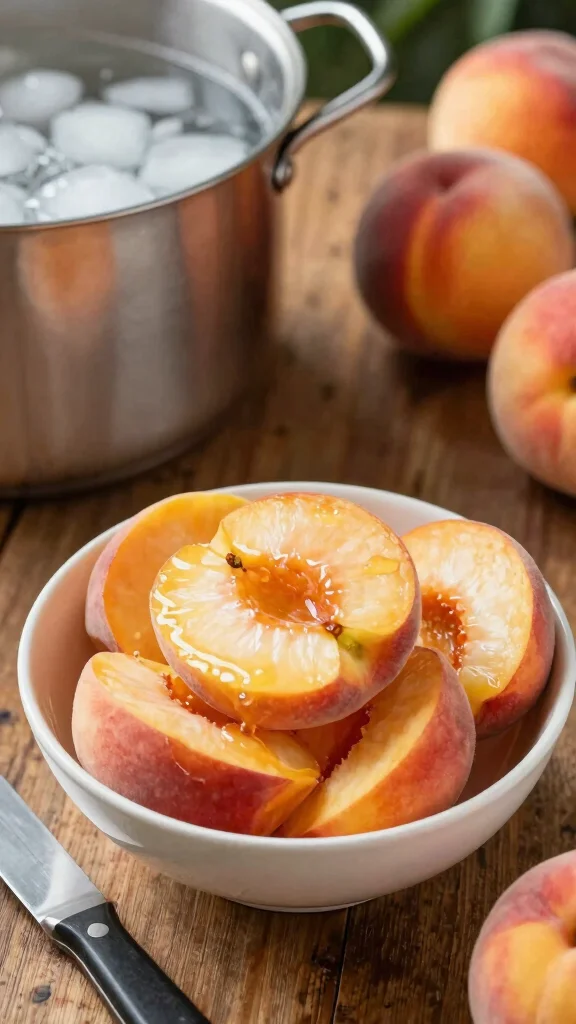 Now that you have your peaches and supplies ready, it’s time to prep those juicy fruits! Start by washing them under cold water to remove dirt or pesticides. Peeling is next, and blanching is the simplest method: