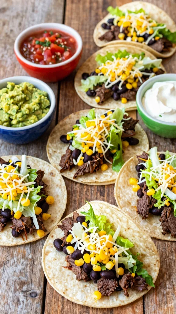 – Optional toppings: shredded lettuce, cheese, salsa, guacamole, sour cream