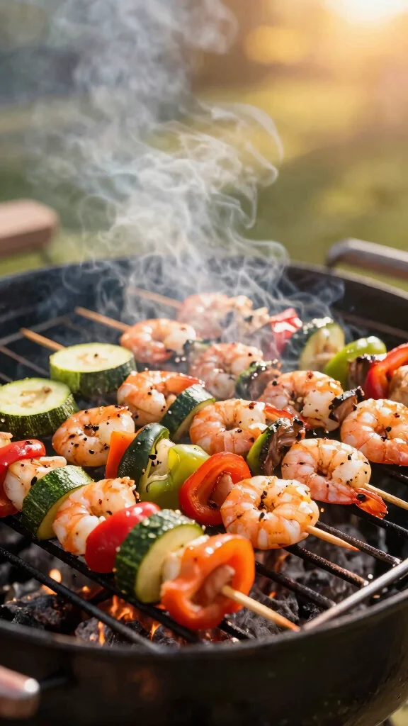 Summer on a stick. These shrimp and veggie skewers are simple to assemble and easy to grill. They offer color, texture, and a light, tasty bite. Marinade adds flavor, while the grill adds a touch of smoky char. Pair with a fresh salad for a complete meal. You can swap veggies to fit your taste. Here is a friendly, flexible grilling idea you can bring to any table.